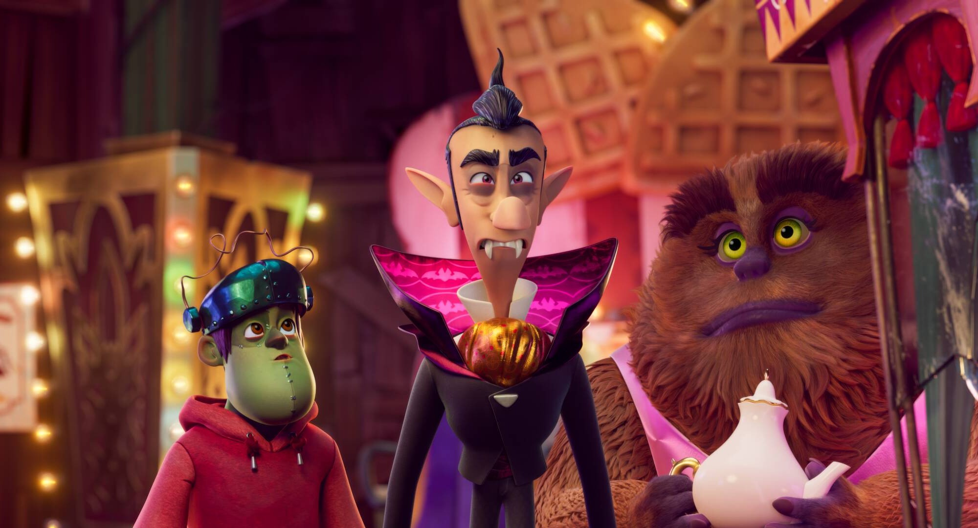 Δεν βρίσκει εκεί τον θείο της, συναντά όμως κάτι εξίσου απρόσμενο: μια μυστική κοινότητα τεράτων που ζουν κρυφά μέσα στο τρένο. Το γλυκό αλλά και εκκεντρικό γέτι, τη Μάρθα, τον κομψό (και χορτοφάγο!) βρικόλακα, τον Ρολφ Βανγκρούφτι, και τον ιδιόρρυθμο Ναρφ Φρανκενστάιν.